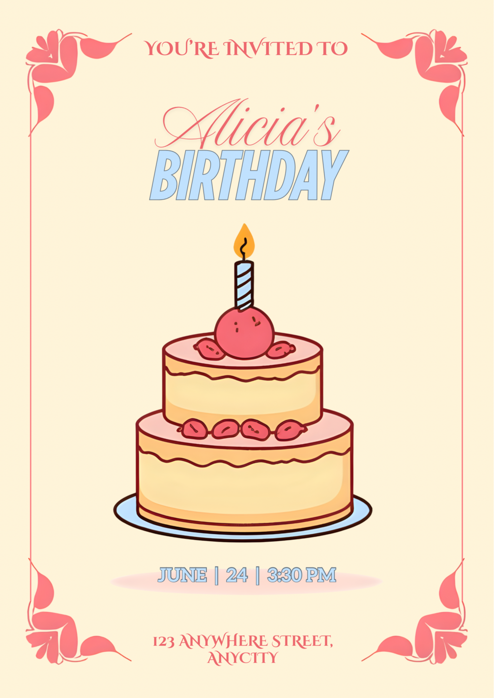 (Editable Canva Template) Cute Pastel Cake Birthday Invitation Card