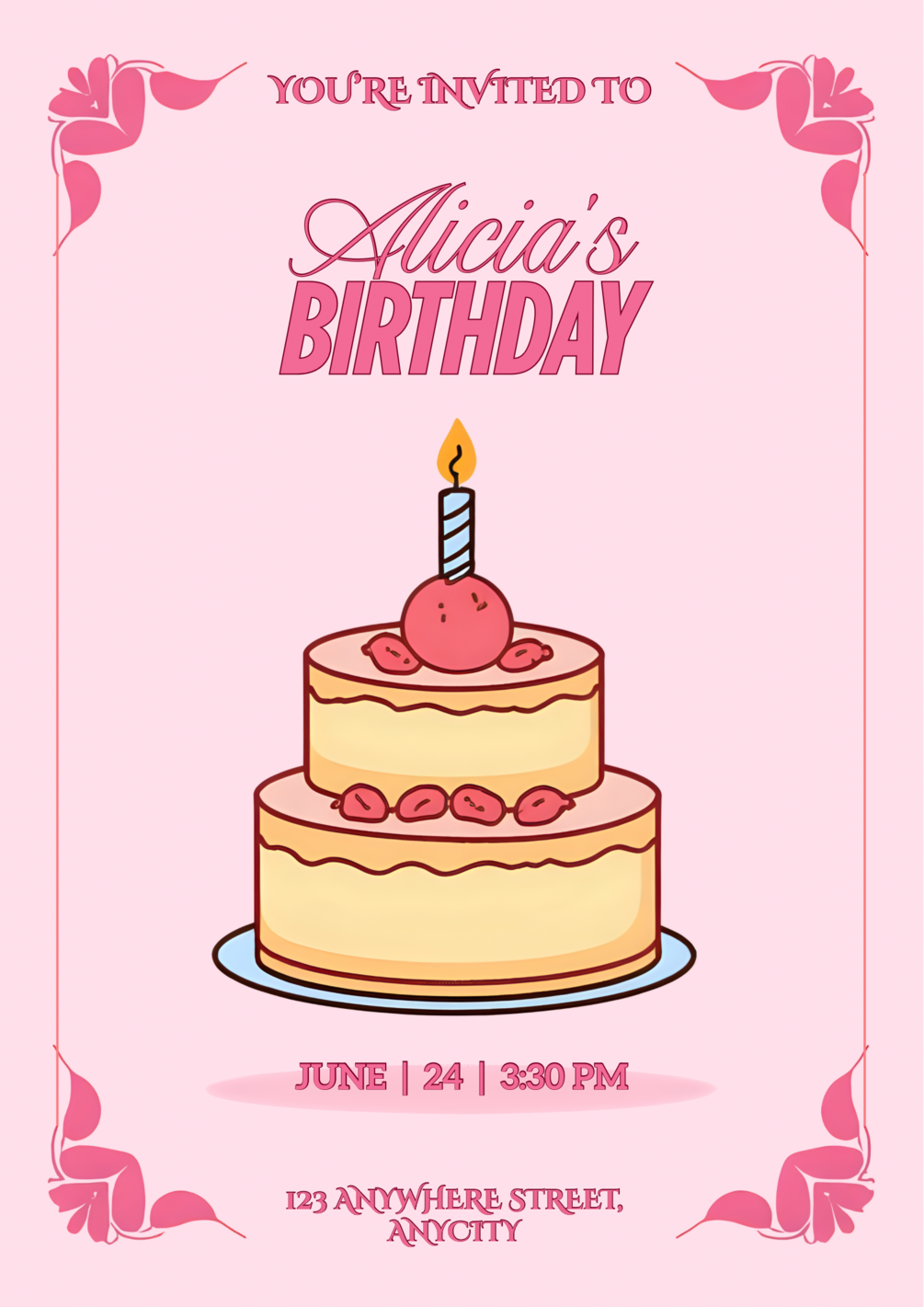 (Editable Canva Template) Cute Pastel Cake Birthday Invitation Card